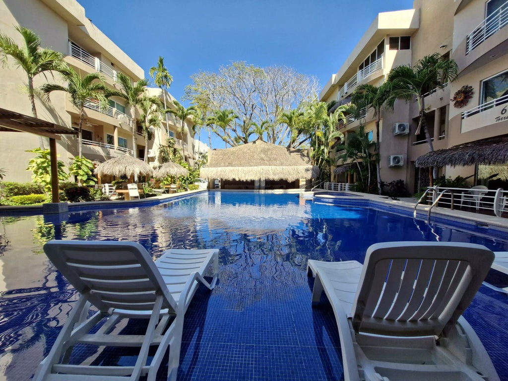 Located in beautiful Golden Zone Bucerias, walking distance to Beach, restaurants, stores, banks, pharmacy, & bus/taxi in a gated community. This beautiful Ground Level Condo, ideal for pool lovers or anyone with mobility issues. Offers quality finishings, granite countertops, & parota wood cabinetry. Recently updated with a New Palapa covered spacious patio is close to the amazing pool & swim up bar. Brand new ceiling fans, & recently painted interior. Common rooftop terrace overlooking the Bay of Banderas. This fully furnished 3 bdr/ 2 bath, fully equipped kitchen, laundry room, large double patio facing pool & private back patio, with secured parking on property for owners & outside guest parking. HOA includes gas & water. Great rental income generator or a Paradise HomeUbicado en la hermosa Zona Dorada de Bucerías, a pasos de la playa, restaurantes, tiendas, bancos, farmacias y paradas de autobús/taxi en una comunidad privada. Este hermoso condominio en planta baja es ideal para amantes de la piscina o personas con movilidad reducida. Ofrece acabados de alta calidad, encimeras de granito y gabinetes de madera de parota. Recientemente renovado con un espacioso patio cubierto con palapa, cerca de la increíble piscina y el bar en la piscina. Ventiladores de techo nuevos e interior recién pintado. Terraza común en la azotea con vista a la Bahía de Banderas. Este condominio completamente amueblado de 3 recámaras y 2 baños cuenta con cocina totalmente equipada, cuarto de lavado, amplio patio doble con vista a la piscina y patio trasero privado, con estacionamiento seguro en la propiedad para los propietarios y estacionamiento exterior para invitados. La cuota de mantenimiento incluye gas y agua. Excelente generador de ingresos por alquiler o una casa ideal.