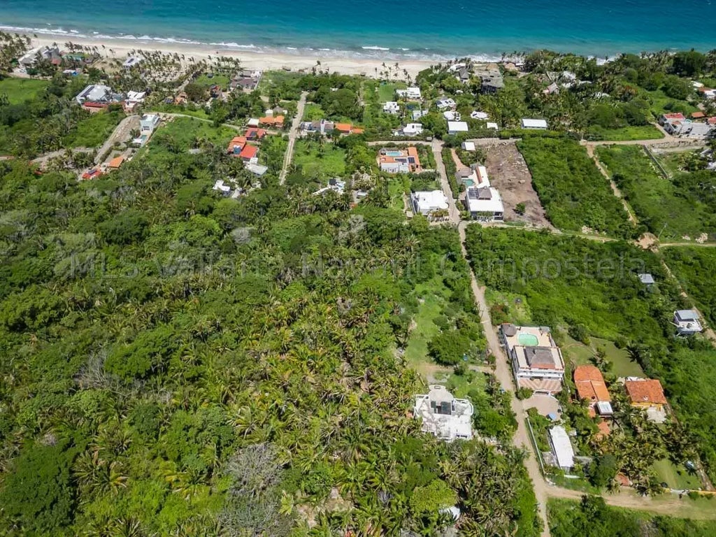 Lot C-1 in Litibú, Jardín Street, with a front view of the ocean at Higuera Blanca beach. The land is 2,472.23 m2 and features a path lined with beautiful palm trees and native trees from the jungle area, such as the "Umbrella Tree" and "Parotas," as well as giant stones that create a unique jungle environment.
