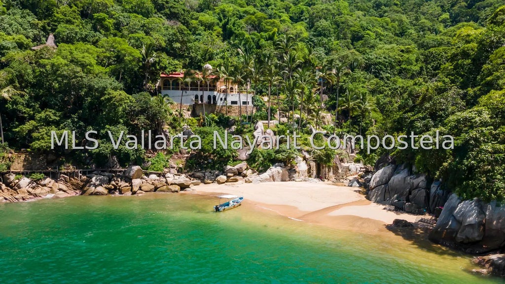 Introducing Villas Maroc - a breathtaking Moroccan-inspired compound featuring a magnificent three-bedroom main house, an attached studio, and a separate one-bedroom casita, with ample room for expansion across nearly 7,000 square meters of adjacent land. The property has been thoughtfully upgraded with modern amenities, including solar power, water storage, and a new roof.Perched above the stunning Playa Colomitos, a hidden gem along the South Shore accessible only by boat or on foot (with planned road access), Villa Maroc juxtaposes intrigue and sophistication. It is a sensory delight, brimming with vibrant colors and opulence, evoking a nostalgia for times past,while situated deep in the pristine beauty of this extraordinary land.From the elegant terrace of the main residence, witness the majestic sight of humpback whales breaching, sea turtles gliding through the water, and parrots chattering in the treetops. Whether envisioned as a boutique resort, a beach club, or a collection of luxury villa rentals, the property offers unparalleled privacy, surrounded by the lush jungle hills with sweeping views across Banderas Bay and the Sierra Madre mountains.