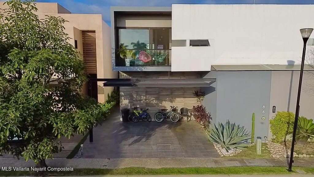 4-bedroom residence in the exclusive Ikal gated community, located in the heart of Nuevo Vallarta. Ideal for a family or for vacationing.Beautiful house built on 2 floors. On the ground floor you will find:- covered parking with pergola for 2 vehicles and mini storage- kitchen, dining room, living room, half bathroom- private terrace with pool- bedroom with walk-in closet and very large full bathroom with tub and shower.On the first level:- family room, ideal as a TV room- 3 large bedrooms each with its own private bathroom and 2 of them with a shared balcony.The price indicated is without furniture. Includes dishwasher, boiler, curtains, fans, lights and mini splits. Additional furniture subject to negotiation.Price is in pesos 9.2M.