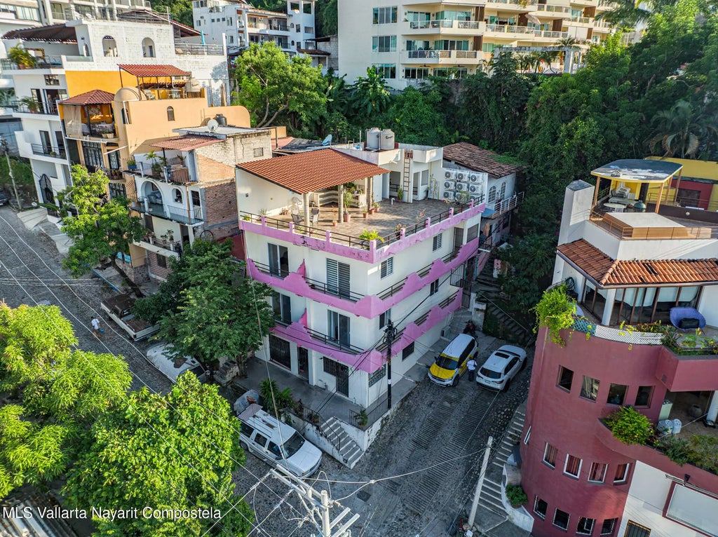 This corner building features 3 levels, each with 2 apartments of 1 bedroom that offer city views from private balconies, while top-floor units provide partial ocean views. The rooftop terrace, boasts a stunning ocean view, perfect for relaxation. Ideally situated just 7 blocks from the beach, it's within walking distance to numerous restaurants and cafes. Each studio includes ceramic countertops, parota wood cabinetry, mini-split air conditioning, and ceiling fans. Constructed with solid concrete and block, this well-maintained building is a rental machine, perfect for those seeking passive income from a prime location. Sold as a single property without condo regime.