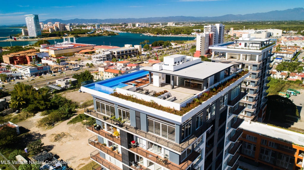 Espanol abajo. Discover this stunning corner unit on the 11th floor, where panoramic views of lush jungle, majestic mountains, partial ocean view, and the vibrant city of Puerto Vallarta await you. The expansive wrap-around balcony offers an idyllic setting to indulge your senses. Inside, you'll be greeted by contemporary furnishings and a sophisticated ambiance in this thoughtfully designed 2-bedroom plus flex room apartment. With its corner location, you can enjoy refreshing breezes throughout the year, even during the hottest summer months. Direct seller financing for up to 50% of value. Take advantage of the exceptional amenities, including a rooftop pool with breathtaking views, a fully-equipped gym, children's playroom, private cinema, yoga room, conference room, and round-the-clock security. Nestled in the heart of Vallarta, you'll find yourself just moments away from the port, Costco, Walmart, La Comer, and some of the finest dining options available. Built by the esteemed 4CGi Grupo Inmobiliario, known for their outstanding track record of quality and success in Vallarta, this apartment is truly a must-see! Plus, it's pet friendly! Seller is open to financing with a 50% down payment.