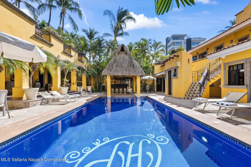 Located in the most sought-after area of Bucerias, directly on the main avenue, also known as Zona Dorada, Hacienda Patrizia is an irresistible gem for investors. Its unmatched design and architecture combine Spanish and Mexican hacienda influences, with exquisite cantera finishes and finely detailed tiles. The property features a stunning main house with an industrial kitchen, four spacious bedrooms, and large terraces. At the heart of the estate lies a spectacular pool with a swim-up bar, creating an alluring retreat for guests. Additionally, four private two-bedroom casitas, each with its own kitchen and independent access, provide a secluded and relaxing experience. This exceptional property is a golden business opportunity, certain to captivate anyone who lays eyes on it.