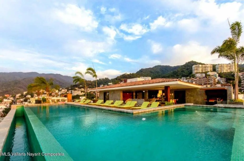 (English Below)Este luminoso y hermoso estudio penthouse con techos altos esta ubicado en el corazon de la Zona Romantica. Disfrute de la vida nocturna o relajese en la espectacular terraza de la azotea del edificio con impresionantes vistas al oceano y al pueblo. Disfrute de la piscina infinita climatizada, el jacuzzi, el gimnasio, un salon techado y area de barbacoa.Este Studio Penthouse se encuentra en el sexto piso del condominio Pacifica, un edificio moderno y muy solicitado, a pasos de la playa de Los Muertos, el Malecon y algunos de los mejores restaurantes y galerias de Puerto Vallarta. Disfrute de las impresionantes vistas a la montana desde su terraza privada donde podra relajarse y entretener a los invitados. Este Studio Penthouse esta decorado en un estilo contemporaneo.Viene totalmente equipado con una cocina bien diseñada, lavavajillas, lavadora y secadora, un televisor de pantalla plana, iluminación empotrada y un sistema de aire acondicionado por zonas. English: This bright and beautiful penthouse studio with high ceilings is located in the heart of the famous Romantic Zone. Enjoy the nightlife or relax in the building's spectacular rooftop terrace with stunning views of the ocean and Old Town. Enjoy the heated infinity swimming pool, jacuzzi, gym, the shaded lounge and BBQ area at the rooftop terrace. This Studio Penthouse sits on the sixth floor of Pacifica condominium - a modern and highly sought after building, steps away from Los Muertos Beach, the Malecón (boardwalk) and some of the best restaurants and galleries in Puerto Vallarta. Enjoy the stunning mountain views from your private terrace where you can relax and entertain guests. This Studio Penthouse is decorated in a contemporary Mexican style. It comes fully equipped with a designer kitchen, dishwasher, washer and dryer, a flat screen television, recessed lighting and a zoned air conditioning system.