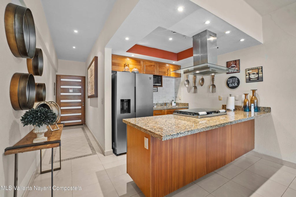Discover this beautifully designed 2-bedroom, 2-bath condo in the charming 5 de Diciembre neighborhood. Nestled on a hillside just a few blocks from the beach, restaurants, and shops, this top-floor unit offers breathtaking ocean and city views.Enjoy luxury living with high vaulted ceilings, an open-concept kitchen, and a spacious living area that flows onto a private balcony. The primary suite boasts a king-size bed, ensuite bath, and direct balcony access. The second bedroom includes a queen-size bed and ample storage.This complex features two ocean-view pools, a jacuzzi, a gym, and a rooftop terrace with panoramic sunsets. Secure parking and elevator access included.Own your piece of paradise today!