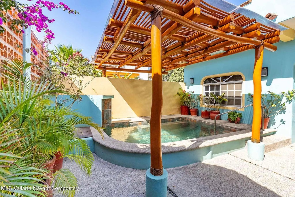 Conveniently nestled in a tranquil San Pancho residential neighborhood, Casa Cascadita, a two bedroom/two and a half bathroom single family home, offers all of the modern comforts plus the beautiful touches of Mexican coastal living. The favorable location, being just blocks from the town center of San Francisco, known to locals as San Pancho, is where one will find a wide variety of restaurants, mini-grocery stores and gift shops, and is also a five-minute walk to the magnificent Riviera Nayarit beach.Casa Cascadita is a single story, two ensuite bedroom home. Upon entering the grounds, one is immediately encompassed in the spacious patio terrace with an outdoor dining table, wet bar with mini fridge, living area and dipping pool with a waterfall feature. living area, kitchen and breakfast bar, all fully air conditioned. There is a backdoor to the rear patio terrace with laundry hook ups. The two, air conditioned, en suite bedrooms are side by side, one king bedroom and one queen.