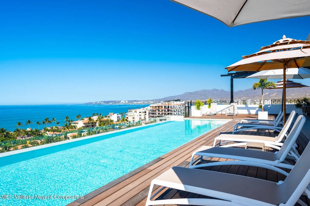 Beautiful New building, ready to move in, located in the Zona Dorada of picturesque Bucerias, only 2 blocks from the beautiful swimmable beach and walking distance to many restaurants, shopping and art galleries. This unit is very spacious featuring Italian kitchens and includes refrigerator, dishwasher, cooktop, oven and microwave. An underground parking and storage locker are also included. Roof top amenities have spectacular views to the ocean and the whole bay, enjoy the Infinity salt water heated pool, Gym and BBQ area. Official prices are in dollars.