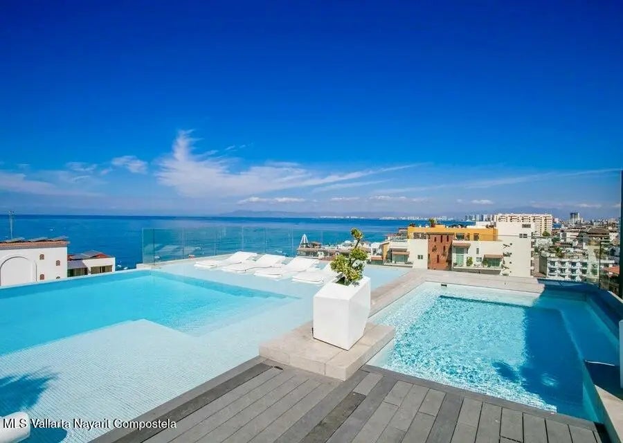 Amazing Rentals with this 1-bedroom, 2-bathroom condo at D'Terrace. One block from Los Muertos Beach and Restaurants, bars, galleries and more. Close to the Zona Romantica activities without the congestion or noise. Fully furnished and ready for you to move in or start making income. Enjoy the ocean and city views from the rooftop terrace, with a large infinity pool, two jacuzzis along with seating areas, and a fire pit. The rooftop gym offers beautiful views. Don't miss out on this opportunity.