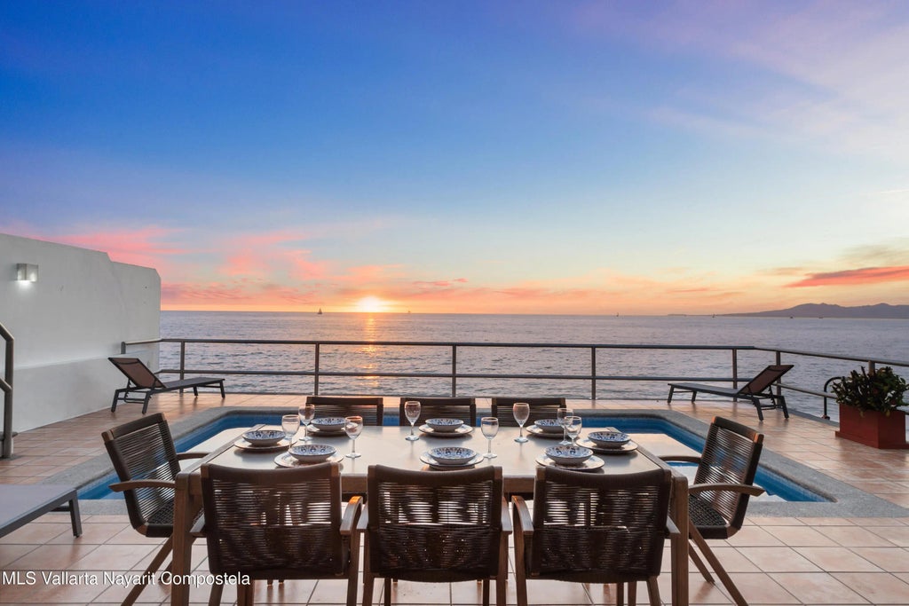 seguro, se accede a un pasillo parcialmente techado que conduce a una espaciosa cochera techada con capacidad para dos vehículos o espacio adicional de almacenamiento. La planta baja es ideal para recibir visitas o generar ingresos por renta, ya que cuenta con un departamento independiente con 2 recámaras, 2 baños completos, sala de TV, acceso directo a la alberca y a un espacio de trabajo con medio baño. Subiendo por la escalera tipo atrio, encontrarás un estudio o recámara de visitas con baño completo, mientras que la recámara principal incluye vestidor, baño de lujo y una ventana interior que conecta con la sala, permitiendo el ingreso de luz natural y vistas al mar azul. La sala se abre hacia la terraza con alberca, ideal para convivencias y momentos especiales. La cocina integral está equipada con tragaluz y