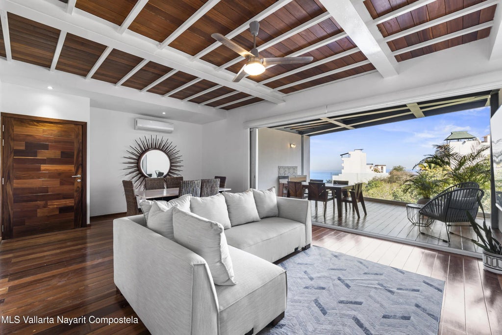 The Ava - Eco-Luxury Living in the Heart of Puerto Vallarta -Be sure to check out our virtual tour & custom video we have posted!-Welcome to The Ava, an exclusive collection of just 24 boutique residences located in the vibrant neighborhood of Cinco de Diciembre. Designed with a focus on sustainability and style, each home features natural materials like Cumaru hardwood flooring and marble countertops, blending eco-conscious design with elevated coastal living.Residents enjoy a rooftop retreat complete with an infinity-edge pool, sky bar, and panoramic views that stretch from the ocean to the jungle and city skyline. The building also offers a gym, co-working space, and a lush garden with a koi pond and edible landscaping--ideal for those seeking a tranquil, connected lifestyle.Unit #4 is a beautifully appointed 2-bedroom, 2-bathroom condo offering indoor-outdoor living with dual covered terracesone facing the ocean and the other overlooking the mountains and jungle. Whether you're relaxing with your morning coffee or entertaining at sunset, the views here are truly breathtaking.
