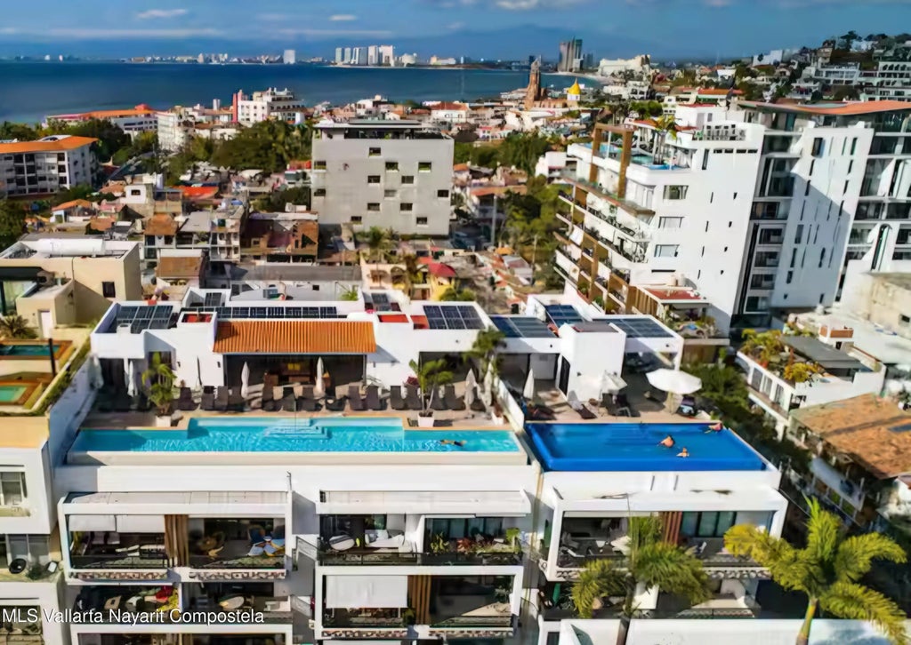 Beautiful and fully furnished 2 bedroom 2 bath condo on the 5th floor of Urban - located in the art's district. Intimate complex of 13 total units includes a roof top deck and pool with fantastic views. Remarkable location on Calle Carranza in the heart of Downtown Puerto Vallarta provides immediate access to restaurants, shopping and galleries, and is a mere two blocks from the beach. This spacious and well-designed unit includes parking and an enormous storage bodega.