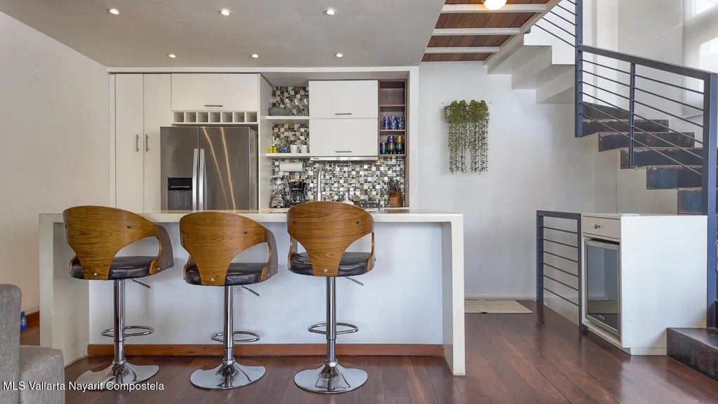Esta casa es mas que un hogar: es un estilo de vida tropical contemporaneo enclavado en las pintorescas colinas que dominan el centro de Puerto Vallarta, a solo 10 minutos a pie del iconico Malecon. Disenada con un estilo arquitectonico elegante, esta residencia de 3 pisos cuenta con impresionantes ventanales de piso a techo, encimeras de cemento pulido y hermosos pisos de madera de parota. Cada habitacion cuenta con aire acondicionado, y la casa incluye un sistema de purificacion de agua y un garaje privado para 2 autos con acceso directo a la unidad. Esta exclusiva comunidad de 8 Residencias disfrutan de una piscina panoramica en la azotea con impresionantes vistas al Oceano Pacifico, la exuberante selva y el pintoresco horizonte de Puerto Vallarta.This is more than a home- it's a cEsta casa es más que un hogar: es un estilo de vida tropical contemporáneo enclavado en las pintorescas colinas que dominan el centro de Puerto Vallarta, a solo 10 minutos a pie del icónico Malecón. Diseñada con un estilo arquitectónico elegante, esta residencia de 3 pisos cuenta con impresionantes ventanales de piso a techo, encimeras de cemento pulido y hermosos pisos de madera de parota. Cada habitación cuenta con aire acondicionado, y la casa incluye un sistema de purificación de agua y un garaje privado para 2 autos con acceso directo a la unidad. Esta exclusiva comunidad de 8 Residencias disfrutan de una piscina panorámica en la azotea con impresionantes vistas al Océano Pacífico, la exuberante selva y el pintoresco horizonte de Puerto Vallarta. This is more than a home- it's a contemporary tropical lifestyle nestled in the scenic hills above downtown Puerto Vallartajust a 10-minute stroll to the iconic Malecón. Designed with architectural flair, this 3 story residence features dramatic floor-to-ceiling windows, polished cement countertops and beautiful parota hardwood floors throughout.Each room has A/C units, and the home includes a water purification system and a private 2-car garage with direct access to the unit. This exclusive community of 8 residences enjoys a panoramic rooftop pool with breathtaking views of the Pacific Ocean, lush jungle, and Puerto Vallarta's picturesque skyline.