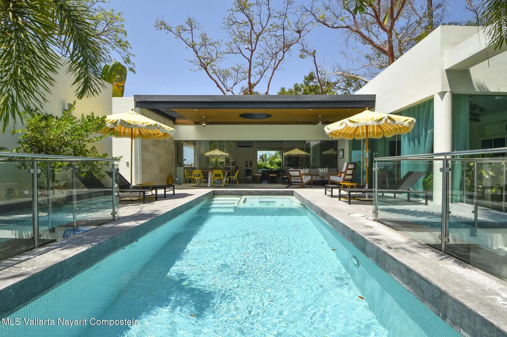 Escape to paradise in this modern masterpiece nestled in the exclusive Sierra del Mar community of Puerto Vallarta. This luxurious home seamlessly blends cutting-edge architecture with the lush beauty of the surrounding jungle. Experience unparalleled privacy and tranquility in this custom-designed residence. The primary and guest houses feature three spacious bedrooms, each boasting an ensuite bathroom offering ultimate comfort and convenience. The expansive living areas flow effortlessly onto a breathtaking outdoor space, complete with a pool and jacuzzi. The landscaped garden and outdoor space are perfect for entertaining or simply unwinding in style. A separate self-contained guest house is nestled amongst the verdant jungle foliage, offering stunning views and an unforgettable stay. Every room in this exceptional property has been carefully designed to maximize the natural beauty and create an unparalleled living experience. This is more than just a home, it's a sanctuary. Escápese al paraíso en esta moderna obra maestra ubicada en la exclusiva comunidad Sierra del Mar de Puerto Vallarta. Esta lujosa casa combina a la perfección la arquitectura de vanguardia con la exuberante belleza de la selva circundante. Experimente una privacidad y tranquilidad inigualables en esta residencia de diseño personalizado. La casa principal y la de huéspedes cuentan con tres espaciosas habitaciones, cada una con baño privado que ofrece la máxima comodidad y conveniencia. Las amplias salas de estar se integran a la perfección con un impresionante espacio exterior, con piscina y jacuzzi. El jardín paisajístico y el espacio exterior son perfectos para el entretenimiento o simplemente para relajarse con estilo. Una casa de huéspedes independiente se encuentra entre la exuberante vegetación de la selva, ofreciendo impresionantes vistas y una estancia inolvidable. Cada habitación de esta excepcional propiedad ha sido cuidadosamente diseñada para maximizar la belleza natural y crear una experiencia de vida inigualable. Esto es más que un hogar, es un santuario.