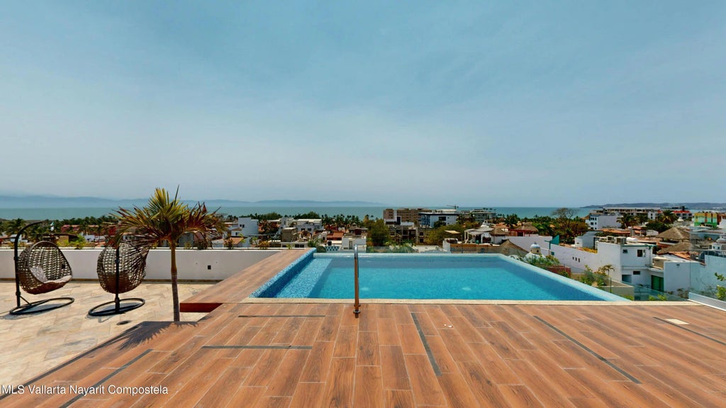 This spacious penthouse for sale is located in Torre Naomi, a new condominium completed in 2024 in Bucerias, Nayarit, just steps from the ocean. The property features 3 bedrooms, 2 bathrooms, an assigned parking space, and is offered unfurnished. Enjoy stunning panoramic ocean views from this top-floor unit, which also provides access to luxury amenities including a rooftop infinity pool, social and lounge areas, BBQ grills, and an elevator. Its exceptional location, within walking distance to the beach, top restaurants, cafes, and shops, makes it an ideal choice for a second home or high-demand vacation rental investment.Este amplio penthouse en venta se encuentra en Torre Naomi, un condominio nuevo terminado en 2024 en Bucerías, Nayarit, a solo unos pasos del mar. La propiedad cuenta con 3 recámaras, 2 baños, estacionamiento asignado y se vende sin muebles. Disfruta de una espectacular vista al océano desde este penthouse, que además ofrece acceso a amenidades exclusivas como rooftop con alberca tipo infinita, áreas de descanso, asadores y elevador. Su ubicación privilegiada, cercana a la playa y a las mejores tiendas, cafeterías y restaurantes de la zona, lo convierte en una excelente opción tanto para vivir como para invertir en rentas vacacionales de alta demanda.