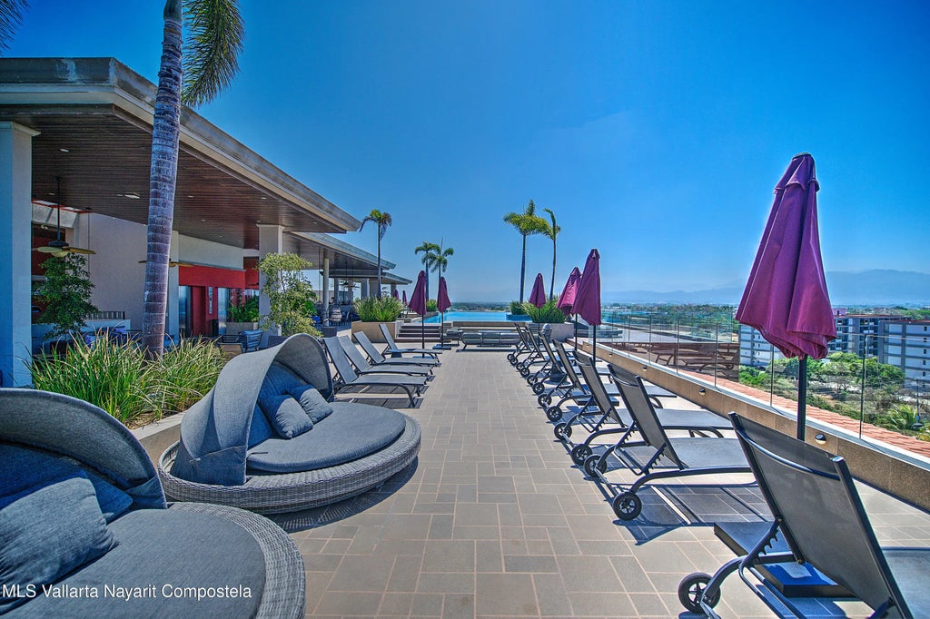 Affordable luxury! This spacious and elegant second floor corner unit overlooks gardens and the adjacent equestrian center. The modern chef's kitchen includes granite counters, custom backsplash, stainless appliances, modern cabinets and oversized center island with bar seating. The elegant living and dining areas open directly to the spacious covered terrace; perfect for entertaining or relaxing. The restful master bedroom enjoys a full ensuite bathroom, perfect for complete privacy from the rest of the home. Two other bedrooms make this a great home for families or guests. Some other features of this lovely home include: washer and dryer, brand new A/C's and ceiling fans in every bedroom.Stylish upgrades include blackout shades, customized window screens, convenient hallway storage area designed to store a surfboard, kayak, or seasonal household items. Two parking spaces are a big plus when hosting friends and family. The 2 elevators in the building lead to the luxurious amenities on the rooftop that include a heated infinity pool, state of the art gym, sunbathing areas, BBQ area, wading pool, and versatile multipurpose family room. A special feature is the room service available from the full service snack bar. You will build lifetime memories with stunning panoramic views of both the mountains and city and other north shore attractions will leave you breathless! 24 hour guarded access in this gated community and near proximity to the longest sandy stretch of beach in the entire bay is a perk of living in Riviera Nayarit. Offered fully furnished, "turn-key", this beautiful home is a perfect option for the upscale, active luxury lifestyle.