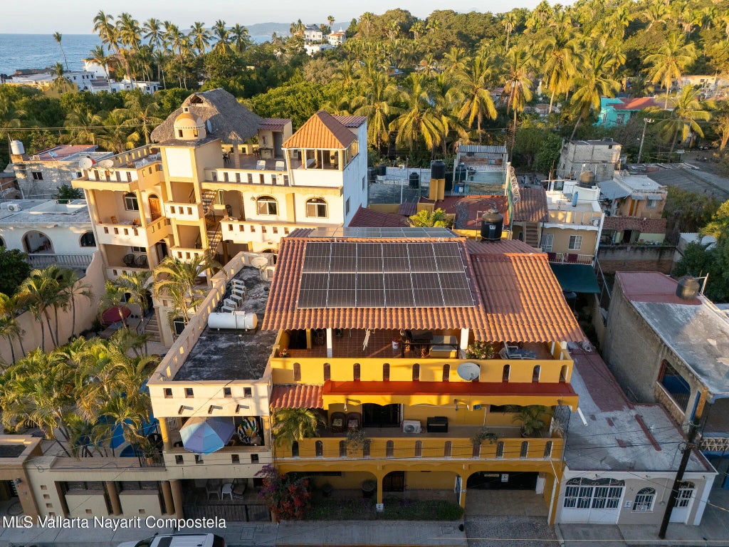 This is a charming property just a block away from the pristine beaches of Nayarit. The main house features three spacious bedrooms with large windows that invite in plenty of natural light and allow for refreshing ocean breezes. The interior is designed with a blend of traditional Mexican architecture and modern comforts. Accessed through the garage are three private rental units, around the pool, making it an ideal setup for a vacation rental or multi-family living, thoughtfully designed to provide privacy and comfort, cozy bedrooms, fully equipped kitchenettes, and stylish bathrooms. The roof top terrace has ocean views and breezes perfect for enjoying the sunrise over the mountains or the sunset over the ocean. Its a true gem for those seeking a serene lifestyle in Nayarit.Acogedora, a solo una manzana y media de la playa. La casa principal cuenta con tres habitaciones amplias con ventanales que te permiten disfrutan de la brisa del mar. El interior tiene una mezcla de diseño tradicional con un toque moderno y cómodo. Por el acceso de la cochera se encuentran tres unidades ideales para rentar por separado, las cuales brindan privacidad y comodidad, equipadas con cocina. Desde la terraza se disfruta una impresionante vista al mar y puestas de sol. Es una verdadera joya para aquellos en busca de un estilo de vida local y sereno en playas de Nayarit.