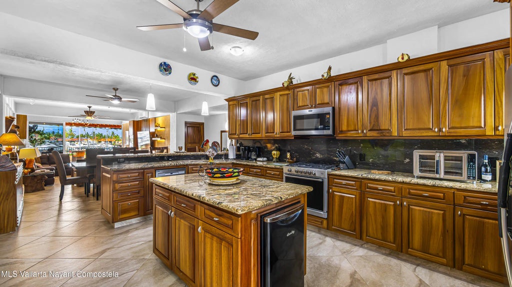 Spectacular Marina Vallarta Views -- One-of-a-Kind Luxury 2-Bedroom CondoDiscover elevated coastal living in this fully renovated 2-bedroom, 2-bath condo w/ stunning views of the Marina Vallarta & its vibrant boardwalk. The open-concept design showcases high-end finishes throughout, blending elegance & comfort.The chef's kitchen features custom Parota wood cabinetry, granite countertops & a center island, which seamlessly flows into the dining area. The living room offers a custom Parota wood entertainment center & bar and opens to a spacious terrace--perfect for entertaining .The principal suite boasts an ensuite bath w/dual vanities, a walk-in closet, & a custom desk .The guest suite includes its own bath, abundant storage, & a cleverly designed laundry center.