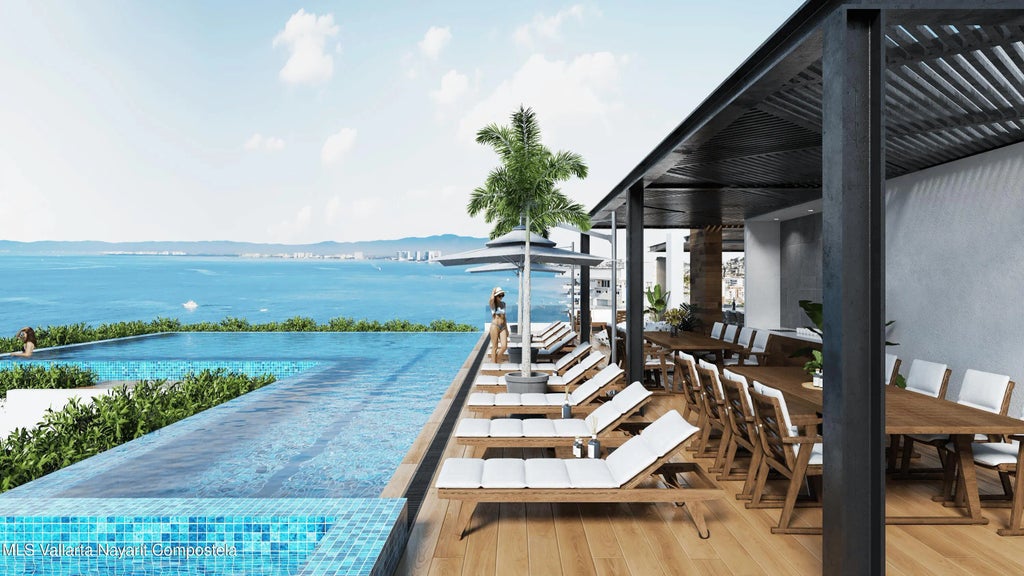Carmelina offers luxury 1- and 2-bedroom oceanview condos for sale in Puerto Vallarta. Residences include marble floors, quartz kitchens with built-in appliances, spa-style bathrooms with soaking tubs, oak carpentry, and private terraces with panoramic ocean views. Ideal for investment, vacation, or full-time living. Carmelina ofrece departamentos de lujo de 1 y 2 recamaras con vista al mar en venta en Puerto Vallarta. Con pisos de marmol, cocinas con cubierta de cuarzo y electrodomesticos, banos con tina, carpinteria en encino y terrazas privadas con vista al mar. Inversion, descanso o residencia.