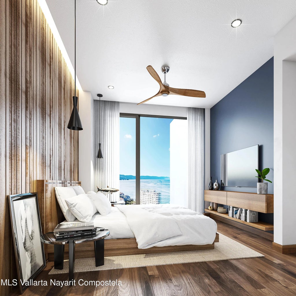 Carmelina offers luxury 1- & 2-bedroom oceanview condos in Puerto Vallarta. Featuring marble floors, quartz kitchens with built-in appliances, spa-style bathrooms with soaking tubs, oak carpentry, and private terraces with panoramic ocean views. Perfect for investment, vacation, or full-time living. Pre-construction pricing. Parking $25,000 USD.----Carmelina ofrece departamentos de lujo de 1 y 2 recamaras con vista al mar en Puerto Vallarta. Con pisos de marmol, cocinas de cuarzo con electrodomesticos integrados, banos tipo spa con tina, carpinteria en encino y terrazas privadas con vistas panoramicas. Ideales para inversion, descanso o residencia. Precio de preventa. Estacionamiento $25,000 USD.