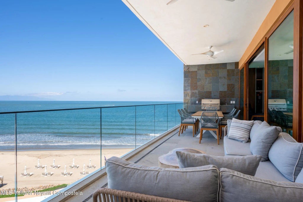 LUMA, the most exclusive beachfront community in Nuevo Vallarta. Located on the 4th floor, Tower 5, it offers spectacular 180º views of the bay, 365 sunsets, beautiful sunrises, views of La Cruz, Marietas, Puerto Vallarta and the beautiful mountains, in season you can see some whales from the terrace. It has 2.90 m heigh ceilings, large terraces, generous spaces in all areas and bedrooms, elegant Parota carpentry. Master bedroom enjoy beautiful ocean views. Luma offers first-class amenities, more than 110 m of beach, 2 beachfront decks, concierge, children's area, mini golf, paddle court, bistro, ocean view gym, spa, 24-hour security, elevators, garden, 2,000 m2 heated infinity pool and the privileges of the social membership at El Tigre Sports & Golf Course. Have your family enjoy in a respectful and safe environment, surrounded by likeminded families.