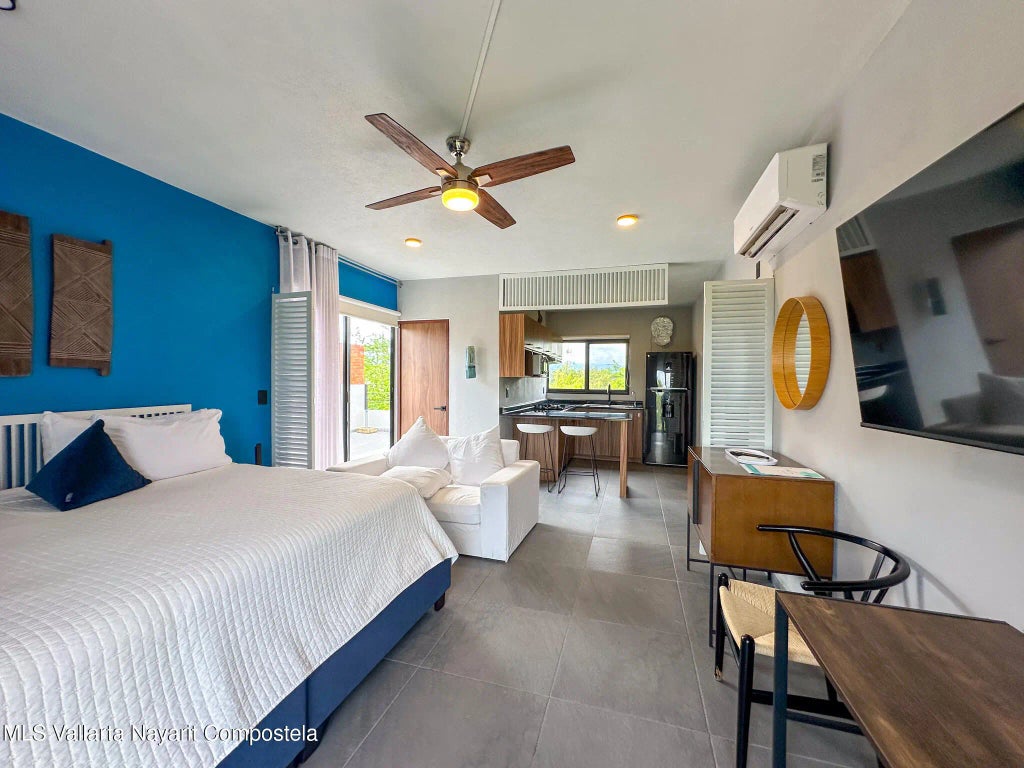 Condo Neem is located in Private Unit "07" (zero seven), Building "E", within the condominium known as Block 1, on Paseo Foresta Street, official number 403 (four hundred three), in the Nuevo Ixtapa residential complex. This is a studio located on the third floor, with a total surface area of 40.21 m² of land and construction. It features a kitchen, 1 full bathroom, is fully furnished, and includes a large terrace, parking space, patio, pet-friendly area, swimming pool, garden, freezer, washing machine, air conditioning, and ceiling fans.