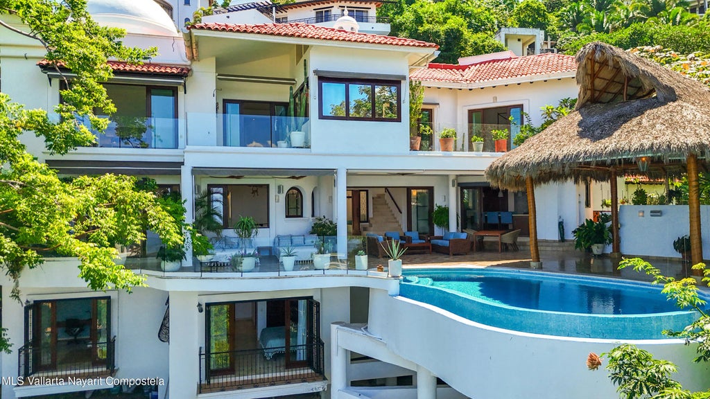Welcome to Casa Estrellita, your private escape in the exclusive gated community of Real Amapas de Conchas Chinas, just moments from Puerto Vallarta's Romantic Zone. This fully renovated 5-bedroom, 5-full baths, with 2 half-baths villa offers the perfect blend of modern elegance and timeless Vallarta charm--ideal for long-term living or a dream retirement in Mexico. Enjoy a chef's kitchen with butler's pantry, marble floors, indoor/outdoor dining, and a sunset-facing infinity pool. Spacious terraces, a palapa lounge, and a flexible ocean-view room invite relaxation and connection. Each en-suite bedroom is a serene retreat, while the lower level offers full laundry, storage, and an extra flex space. Experience refined tropical living on one of Mexico's most sought-after coastlines.