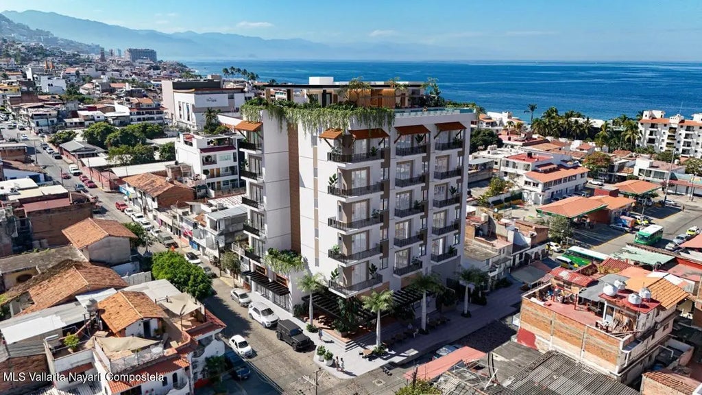 Condo 105 is on the first level along Colombia Street, facing the mountain side. It features 1 bedroom, 2 bathrooms, a practical layout, and a balcony that maximizes its spaces. Secure it now with pre-construction discounts starting at 12% with multiple payment plan options available. Alero is a boutique pre-construction development with only 26 condominiums across 6 levels, just two blocks from the beach and near the Malecon. Surrounded by cafes, markets, restaurants, and the municipal stadium, it captures Vallarta's lifestyle. Amenities include a lobby, interior garden, and on the rooftop: infinity pool, gym, lounge, BBQ area, and 360 panoramic views of the bay, city, and mountains.Alero condo #105 está en el primer nivel sobre la calle Colombia, orientado hacia el lado de la montaña. Cuenta con 1 recámara, 2 baños, distribución práctica y balcón que aprovecha al máximo sus espacios. Asegúralo ahora con descuentos de preventa desde el 12% y diferentes opciones de planes de pago disponibles. Alero es un desarrollo boutique en preventa con solo 26 condominios en 6 niveles, a dos cuadras de la playa y cerca del Malecón. Rodeado de cafés, mercados, restaurantes y el estadio municipal, refleja el estilo de vida vallartense. Amenidades: lobby, jardín interior, y en el rooftop alberca infinity, gimnasio, lounge, asador y vistas panorámicas de 360° a la bahía, ciudad y montañas.
