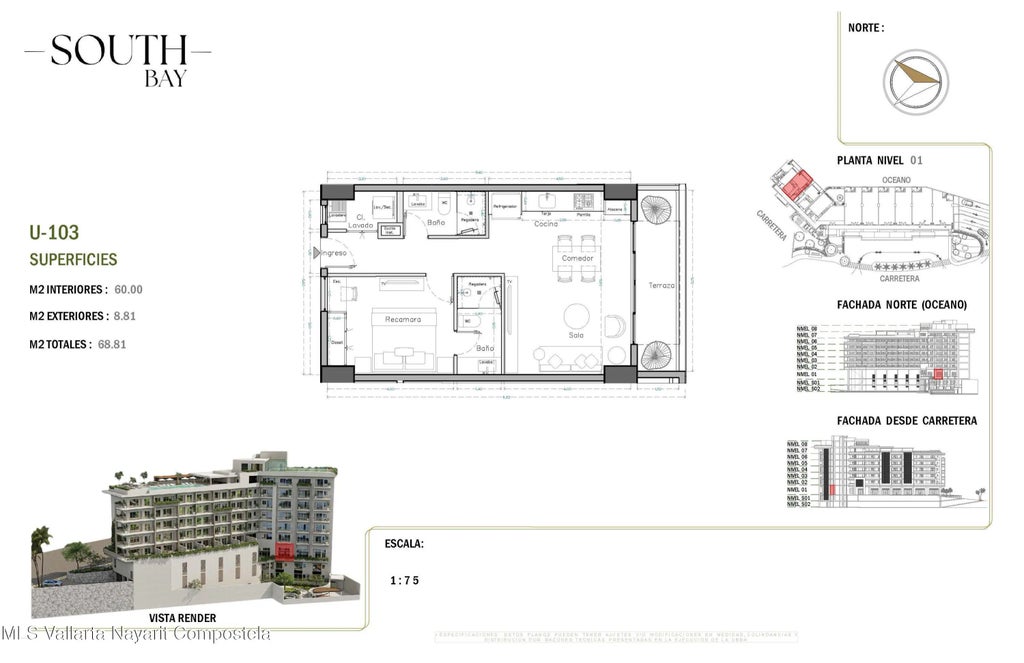 South Bay es un nuevo y exclusivo desarrollo ubicado en el corazon de la Zona Romantica, a pocos pasos de playas, restaurantes, galerias y vida nocturna. El proyecto contara con 65 condominios con vistas y en diversas configuraciones: unidades de 1 recamara, 1 recamara + flex, 1 recamara + den y 2 recamaras, todas con 2 banos completos. Con amenidades de primer nivel que incluyen:*Estacionamiento y bodegas disponibles para la mayoria de las unidades (con costo extra)*Alberca con vistas panoramicas en la azotea con terraza para asolearse*Gimnasio, area para mascotas y cancha de padel unica en la zona*Elevadores, acceso controlado y elegante lobbyUbicado sobre una via principal, South Bay combina accesibilidad, amenidades modernas y estilo de vida, siendoideal tanto para residencia permanente como para inversión en renta vacacional!