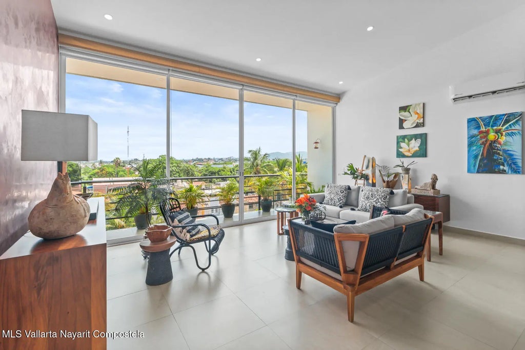 Stunning Penthouse with Panoramic City & Mountain ViewsThis beautifully appointed 3-bedroom, 2-bathroom penthouse offers unmatched privacy and breathtaking, forever views of the city and surrounding mountains. Occupying the entire top floor, this unique residence delivers the feel of a private retreat while being just minutes from the best of Vallarta.Designed with high ceilings and floor-to-ceiling, wall-to-wall windows, the space is flooded with natural light and perfectly frames the sweeping views. The open-concept layout enhances the sense of space and flow, creating a warm and inviting atmosphere.Sold fully furnished and tastefully decorated, every detail has been thoughtfully curated. As an added bonus, the unit features its own solar panel systeman eco-conscious and cost-saving upgrade. This penthouse offers a truly elevated lifestyle in one of Vallarta's most desirable settings. A perfect choice for those seeking a unique and comfortable home with truly outstanding views. ESPANOL Penthouse con Vistas Panorámicas a la Ciudad y a las Montañas Este elegante penthouse de 3 recámaras y 2 baños ofrece una privacidad excepcional y vistas permanentes e impresionantes hacia la ciudad y las montañas. Ocupa todo el piso superior, lo que le da la sensación de una residencia privada, a solo minutos de lo mejor de Vallarta. Diseñado con techos altos y ventanales de piso a techo y de pared a pared, el espacio se llena de luz natural y enmarca perfectamente las vistas. La distribución abierta realza la amplitud y brinda una atmósfera cálida y acogedora en cada rincón. Se vende completamente amueblado y decorado con muy buen gusto. Además, cuenta con un sistema de paneles solares, una mejora ecológica que aporta eficiencia y valor a largo plazo. Este penthouse ofrece un estilo de vida elevado en una de las zonas más atractivas de Vallarta. Ideal para quienes buscan un hogar único, cómodo y con una vista que realmente marca la diferencia.