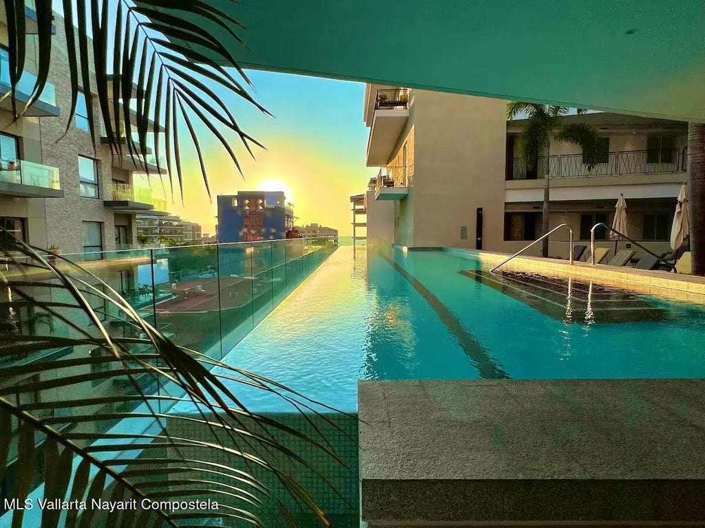 Pavilion 309 es un encantador departamento de 75.96 m con una habitacion y dos banos completos. Pertenece a un edificio moderno de 7 pisos y 63 unidades, situado en el vibrante corazon de la Zona Romantica, a solo dos cuadras de la playa. El edificio ofrece amenidades de primer nivel: jardin en la azotea con alberca infinita, dos jacuzzis climatizados, zona de barbacoa, gimnasio, piscina tipo lap, seguridad 24/7, elevador, y opciones de estacionamiento y almacenamiento . Pavilion 309 presume de un balcon con vista a la calle principal y vista parcial al mar, ideal para relajarse y disfrutar del ambiente romantico y dinamico de la zonaPavilion 309 is a stylish 75.96 m² (approximately 818 ft²) one-bedroom, two-bathroom condominium located in an elegant seven-story building comprising 63 units. Nestled in the heart of Puerto Vallarta's beloved Zona Romántica, it sits just two blocks from the beach and within easy walking distance of the best cafés, boutiques, galleries, and nightlife, offering a blend of serene comfort and vibrant urban life.