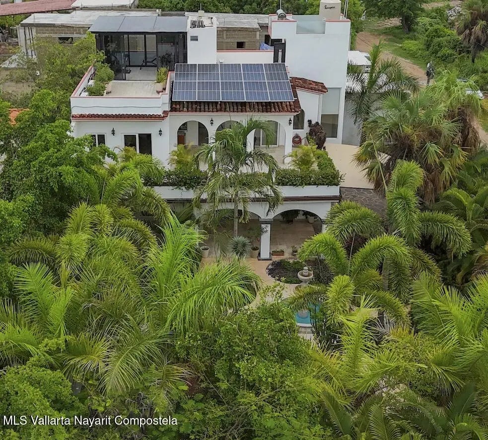 Villa Paraiso Verde es una excepcional residencia de lujo que combina elegantes renovaciones con detalles modernos, ofreciendo lo ultimo en comodidad y estilo. Meticulosamente disenada, esta espaciosa casa incluye un elevador privado, paneles solares y un hermoso jardin tropical con una encantadora fuente y espacio para una piscina.En su interior, disfruta de amenidades premium como un gimnasio privado, espacio de oficina exclusivo y amplio estacionamiento para hasta cuatro vehiculos. El tercer piso de la casa revela impresionantes vistas panoramicas de las majestuosas montanas y el oceano, creando un sereno refugio privado para la vida diaria.Villa Paraiso Verde es un exuberante oasis que ofrece tranquilidad con una combinacion unica de sofisticacion, sostenibilidad, belleza naturaly privacidad. Esta increíble propiedad se encuentra a solo 20 minutos del mar y a 30 minutos de la Zona Romántica. Convenientemente ubicada cerca de todos los servicios que Puerto Vallarta tiene para ofrecer. Villa Paraíso Verde is an exceptional luxury residence combining elegant renovations with modern features, offering the ultimate in comfort and style. Meticulously designed, this spacious home includes a private elevator, solar panels, and a beautiful tropical garden with a charming fountain and space for a pool. Inside, enjoy premium amenities such as a personal gym, dedicated office space, and ample parking for up to four vehicles. Enjoy stunning panoramic views of the majestic mountains and ocean from the 3rd floor where you will have your very own serene private haven for daily living. Villa Paraíso Verde is a lush oasis offering tranquility with a unique combination of sophistication, sustainability, natural beauty, and privacy. This incredible property is located just 20 minutes from the ocean and 30 minutes from the Romantic Zone. Conveniently located to all the amenities that Puerto Vallarta has to offer.