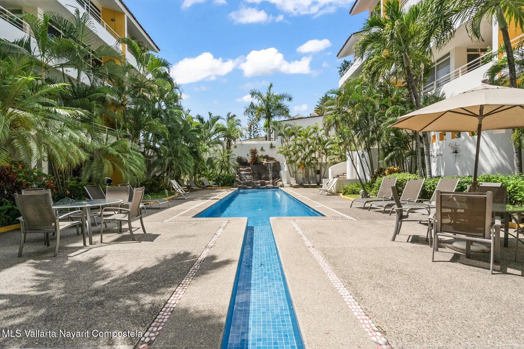 Experience the lifestyle of Bucerias at Moona Condominium, just a five-minute walk to the beach and located at the entrance of the exclusive Golden Zone, a prime location surrounded by gourmet restaurants, cafes, art galleries, hospitals, banks, and supermarkets. This condo for sale is on the first level and comes fully furnished, move-in ready or perfect for rental income. It features two spacious bedrooms, two full bathrooms, a terrace, a private backyard garden, a laundry room, and private parking. Moona offers the perfect balance of comfort and security with amenities that include solar panels for common areas, a heated swimming pool, controlled access, 24/7 security, a gym, a reading lounge, and a rooftop with sun loungers and breathtaking panoramic views.
