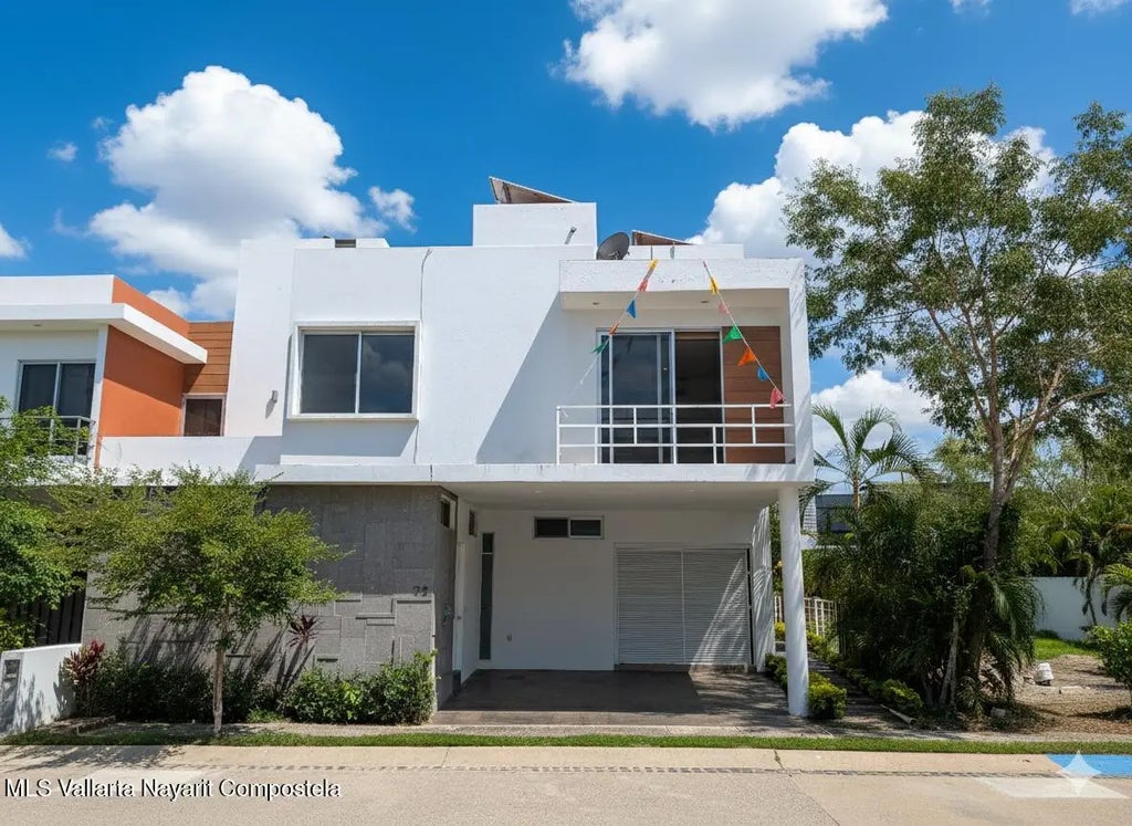 Ikal Habitat es una comunidad privada en el corazon de Nuevo Vallarta, seguridad 24 horas e ingreso controlado, extensas areas verdes bellamente conservados, alberca semiolipica y area de coworking.Casa 72 ofrece amplios espacios perfectamente disenados, cuarto de servicio con bano completo, tres recamaras + cuarto de TV en segundo piso y un roof top con pequeno jacuzzi, ademas cuenta con 12 paneles solares. Ven a conocerla, querras vivir en ella desde el momento que ingreses a su recibidor.