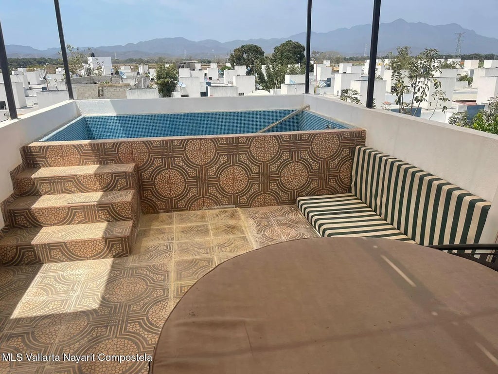 Casa de cuatro recamaras y dos y medio banos, ubicada en colonia Valle Esmeralda, cerca de la Mision, San Vicente Nayarit, a 30 minutos de las playas de Nuevo Vallarta y 40 minutos del Aeropuerto Internacional de Puerto Vallarta, La casa cuenta con estacionamiento para un auto con porton y rooftop con jacuzzi y bano. Four-bedroom, two-and-a-half-baths house located in the Valle Esmeralda neighborhood, near ''La Mision'' in San Vicente Nayarit, just a 30 minutes drive to the beaches of Nuevo Vallarta and 40 minutes to Puerto Vallartas International Airport. The house has carport and a rooftop terrace with a Jacuzzi and bathroom.