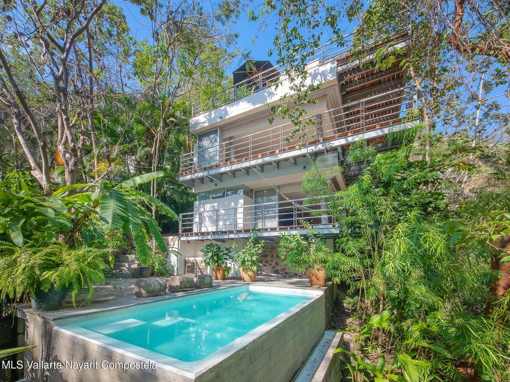 English: Tucked away in the lush hills of Las Amapas, this exclusive residence is part of a gated community of only 18 luxury homes, where privacy and nature come together in perfect harmony.Designed across three spacious levels, the home offers 3 bedrooms, 3.5 bathrooms, fully furnished, blending comfort with contemporary elegance. Expansive terraces open to the surrounding jungle, creating a seamless indoor-outdoor lifestyle.This architectural project, awarded the CEMEX Prize in 2011, masterfully combines concrete, steel, wood, and the surrounding jungle, resulting in a residence that is both sophisticated and timeless. Enjoy the luxury of your own private pool embraced by tropical greenery, while also having access to a beautiful community pool and shared amenities. Unlike many properties in the area, this home stands out for its sense of space, exclusivity, and serene settingideal for those seeking both sophistication and a true jungle retreat.